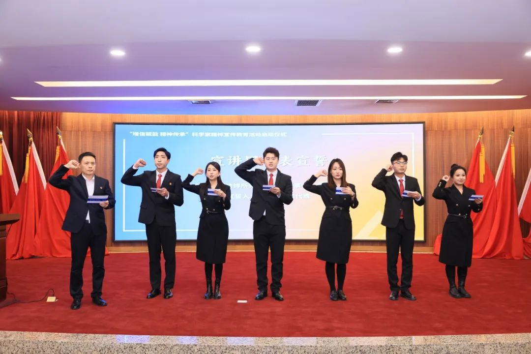 為大力弘揚科學家精神,彰顯集團科技創(chuàng)新國家隊使命擔當,會議啟動“增信賦能 精神傳承”科學家精神宣傳教育活動,李玉鑫為“尚學揚志 焊衛(wèi)匠心”宣講團成員頒發(fā)聘書,宣講團團長雷振帶領(lǐng)哈焊所青年代表進行宣誓。